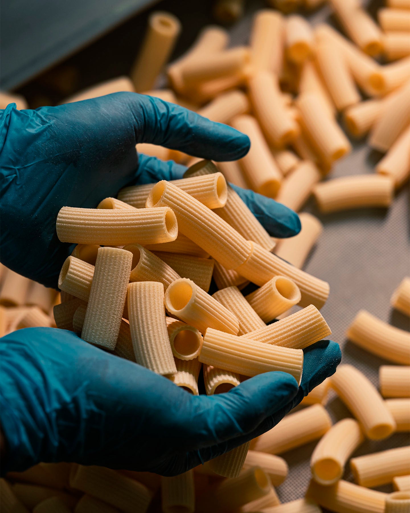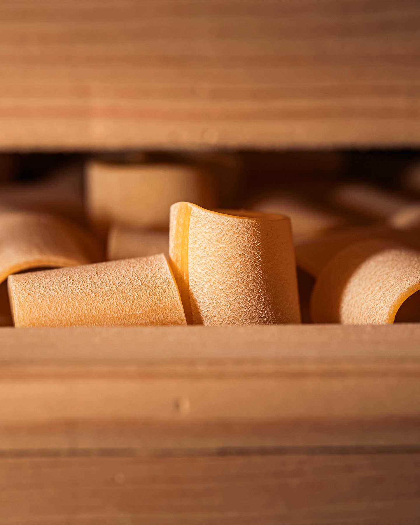 Attraversando le trafile, l’impasto prende forma e acquisisce la sua caratteristica superficie ruvida e porosa. È proprio questa rugosità che permette al sugo di aderire meglio alla pasta, valorizzando ogni preparazione.